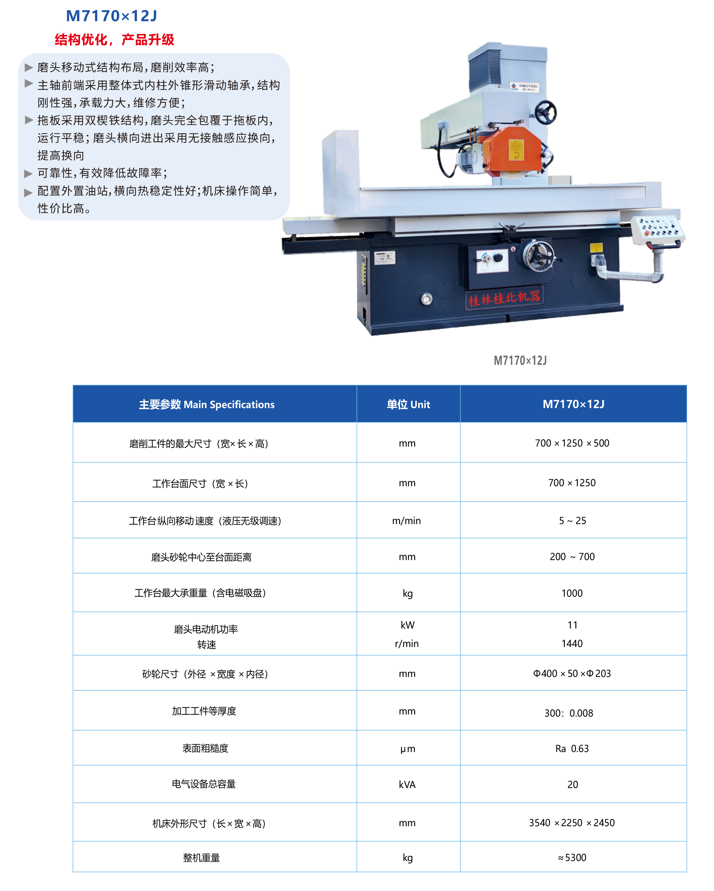 臥軸距臺(tái)平面磨床(磨頭移動(dòng)式)M7170×12J