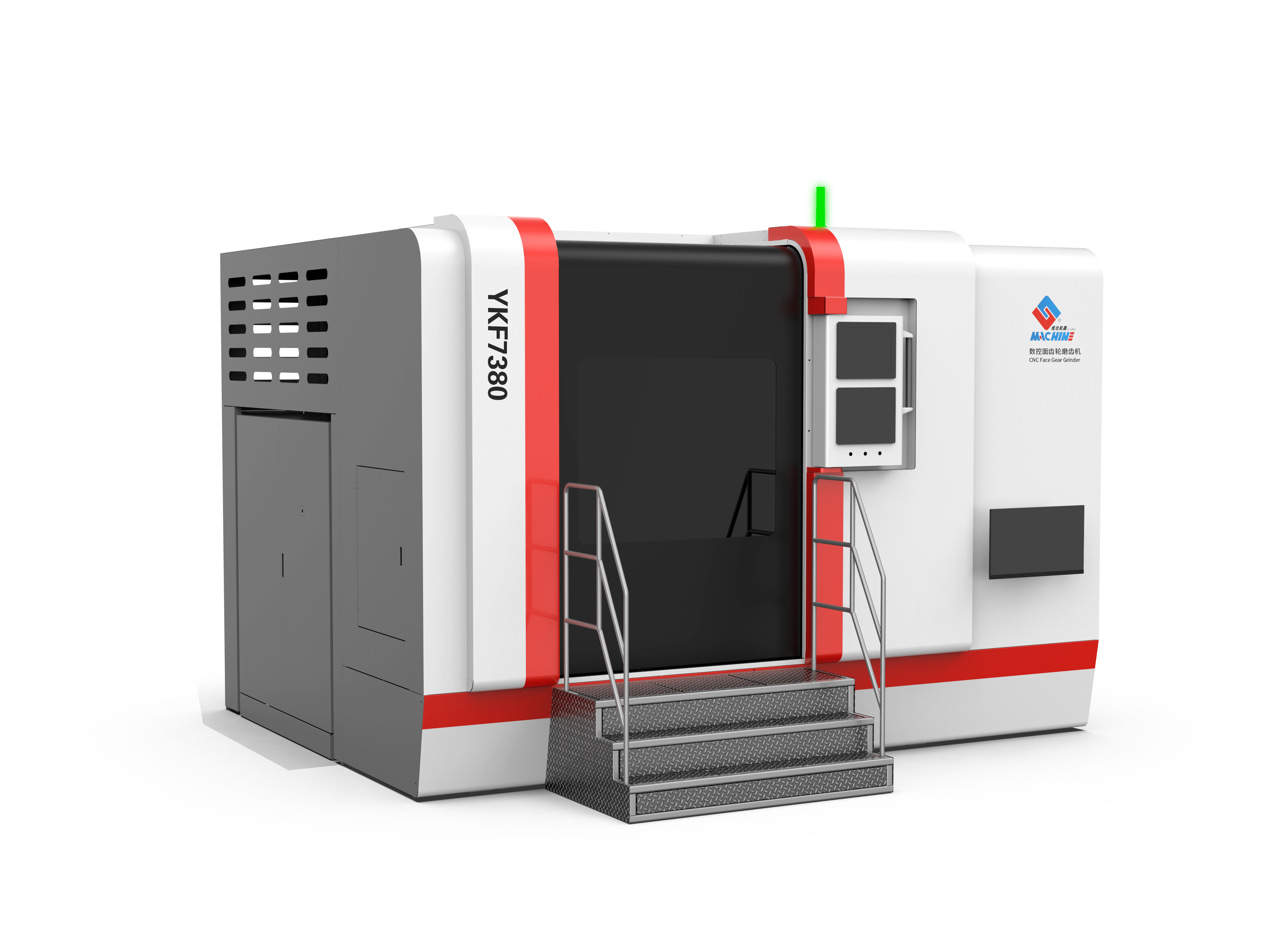全尺寸大空間高精度數(shù)控面齒輪磨齒機(型號:YKF7380)”是桂林桂北機器有限責(zé)任公司針對面齒輪加工難題,聯(lián)合北京航空航天大學(xué)成功研制的國內(nèi)首臺八軸五聯(lián)動數(shù)控面齒輪廣域磨削專用機床。該機床具備全尺寸設(shè)計、大空間結(jié)構(gòu)和高精度加工的特點,工件可加工尺寸范圍大,加工直徑范圍Ф50~850mm,模數(shù)1~12,適用于航空、兵器、工程機械、高端機床等多領(lǐng)域,相關(guān)技術(shù)達到國際先進水平,其中大展成加工空間和大接觸區(qū)面積等部分技術(shù)指標達到國際領(lǐng)先水平,填補了國內(nèi)技術(shù)空白,促進了國產(chǎn)面齒輪產(chǎn)品質(zhì)量躍升和產(chǎn)業(yè)鏈體系自主可控。
