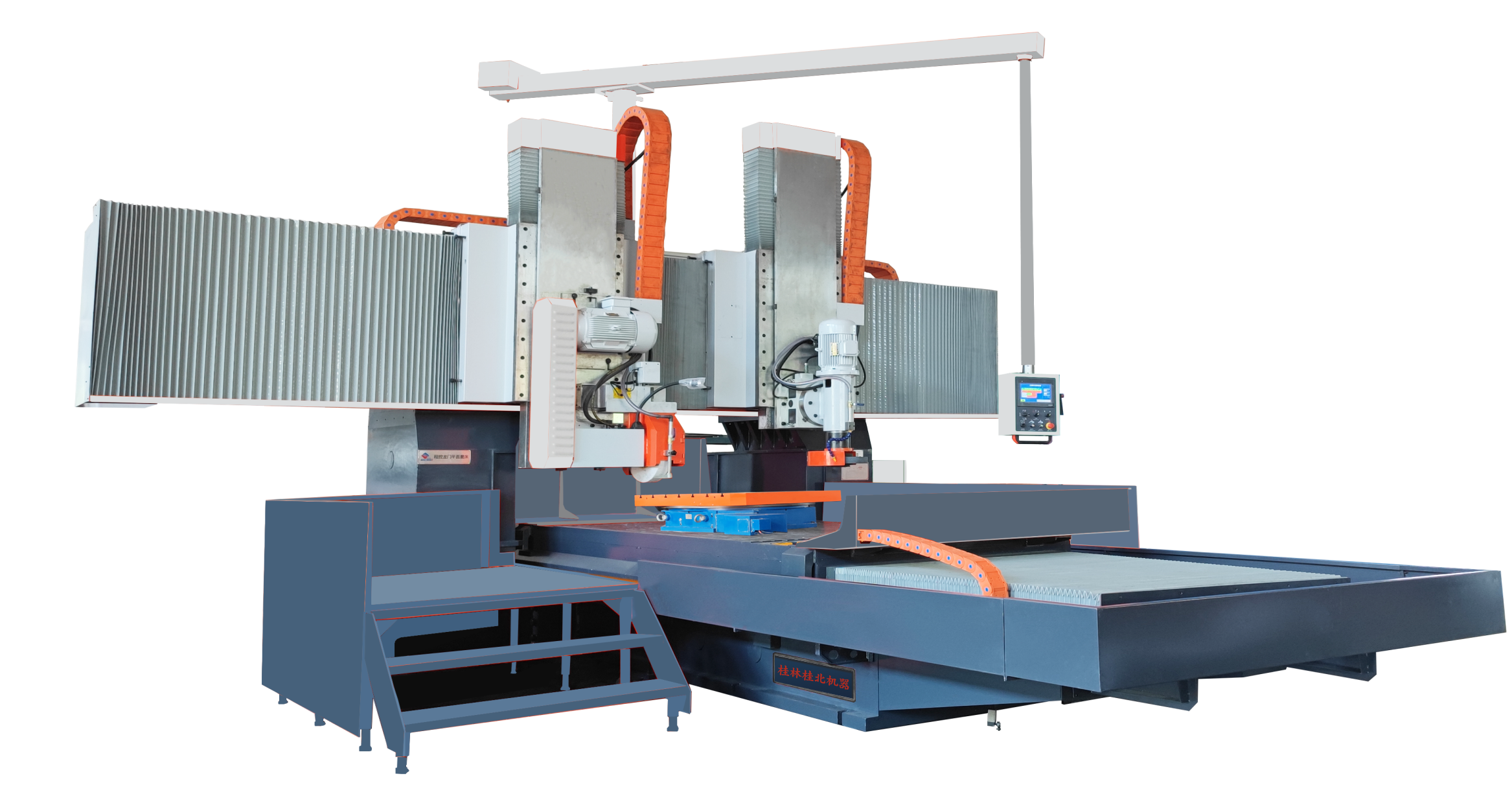 五面磨削龍門平面磨床(型號:GM-CD3025C∕12G)”則采定梁式雙立柱龍門框架結(jié)構(gòu),結(jié)構(gòu)穩(wěn)固,工作臺由比例閥外置油站驅(qū)動沿床身雙V滑動導(dǎo)軌移動,能在一次裝夾中,對工件的水平面及四個垂直側(cè)面進行五面磨削,適用于大理石、機械制造等多個行業(yè)的大型零件加工。該產(chǎn)品技術(shù)達到國內(nèi)領(lǐng)先水平,填補了國內(nèi)空白,解決了精度00級以上大型大理石平板水平面及四個直角面人工刮研等工藝難題,提升了產(chǎn)品市場競爭力。